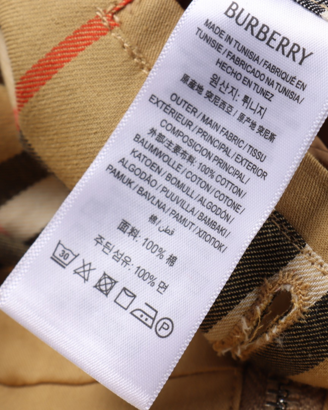 - Материал: Внешняя часть выполнена из 100% хлопка (габардин), подкладка — из вискозы или хлопка с фирменным клетчатым узором Burberry Check.